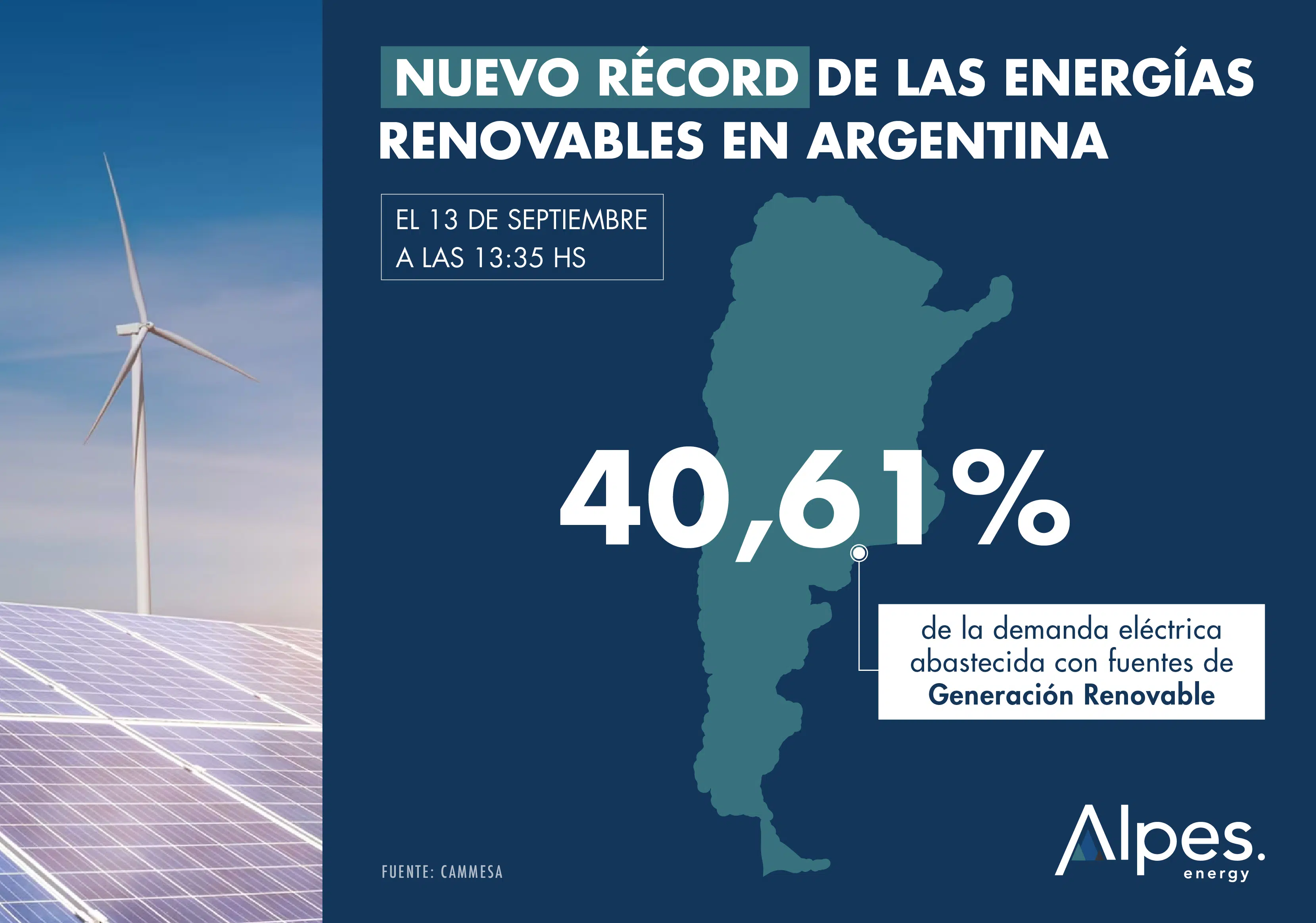Según los registros de CAMMESA, las renovables bajo el marco de la Ley 26.190 aportaron un total de 6.047 MW, lo que representó el 40,61% de la demanda total del sistema, que en ese momento fue de 14.890 MW.