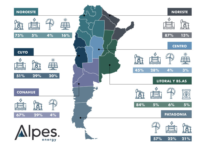 Como podemos observar en el siguiente gráfico, Argentina ha sabido desarrollar numerosas formas de aprovechamiento de los recursos tanto renovables como no renovables para abastecer a toda una población e industria con el insumo básico para el desarrollo que es la energía eléctrica.