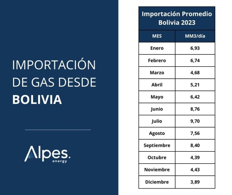 Actualmente, la demanda del Noa y Centro-Norte Argentino se abastece con producción propia de 2.87 Mm3/día, más la importación de Bolivia que en el año 2023 promedio los 6.43 Mm3/día, con un volumen adicional de Gas Natural que fluye desde la planta compresora de San Jeronimo hacia el centro del país.