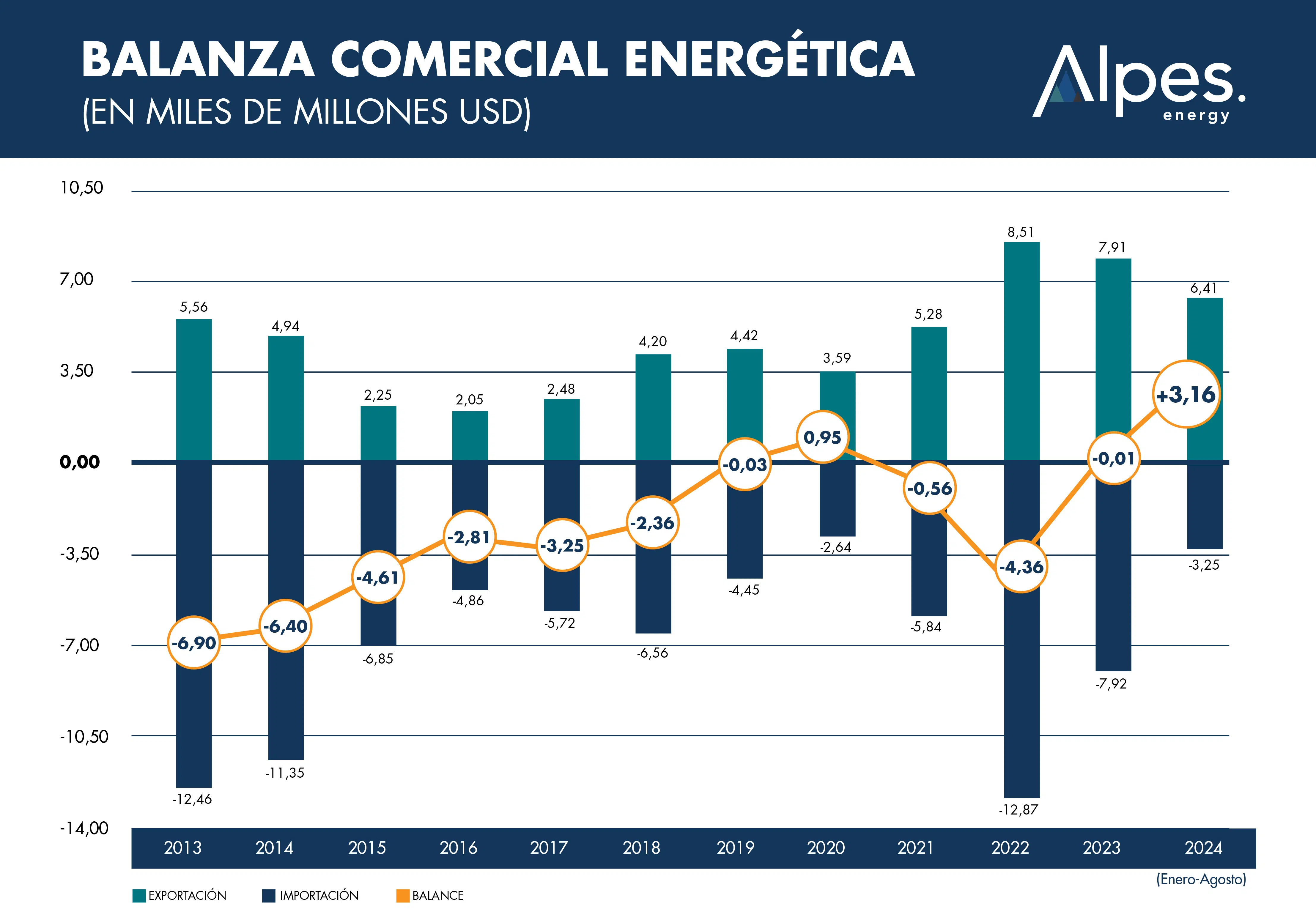 La energía fue uno de los puntos más críticos en la debilidad estructural de la economía argentina durante los últimos 15 años. A partir de la crisis del 2001 y la caída en la inversión en exploración y producción de gas y petróleo, el saldo entre exportaciones e importaciones fue decreciendo hasta llegar al déficit neto a partir de 2011. Desde ese año y hasta 2022 se acumuló un saldo negativo de casi USD 20.000 millones, lo que contribuyó a la escasez de dólares que caracterizó a la última década.